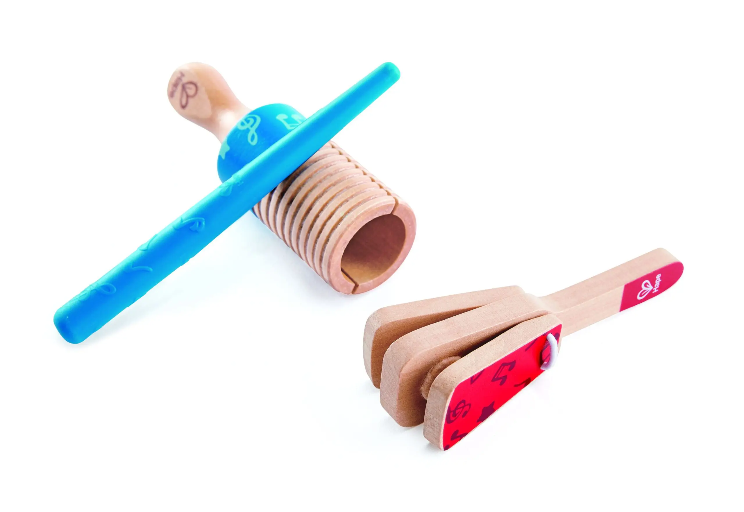 - Un petit tambour ou des maracas pour explorer les sons librement comme Coffret Musical – Léo le Lion ou Duo de Percussion