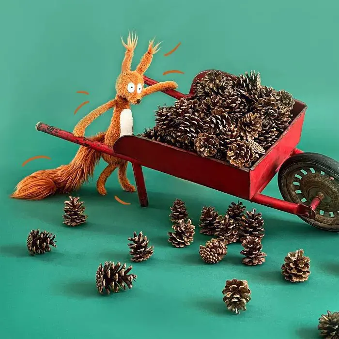 Le bel écureuil roux, héros de l’école des loisirs, prend vie pour jouer et s’amuser avec les petits ! Un brin farfelu, il a des yeux grands comme des soucoupes et une queue en panache. Son péché mignon à lui…les pommes de pin !