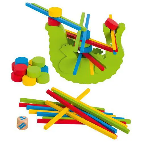 Les baguettes et les pièces doivent être posées de manière adroite sur le crocodile, sans que celui-ci ne vacille et ne renverse tout.