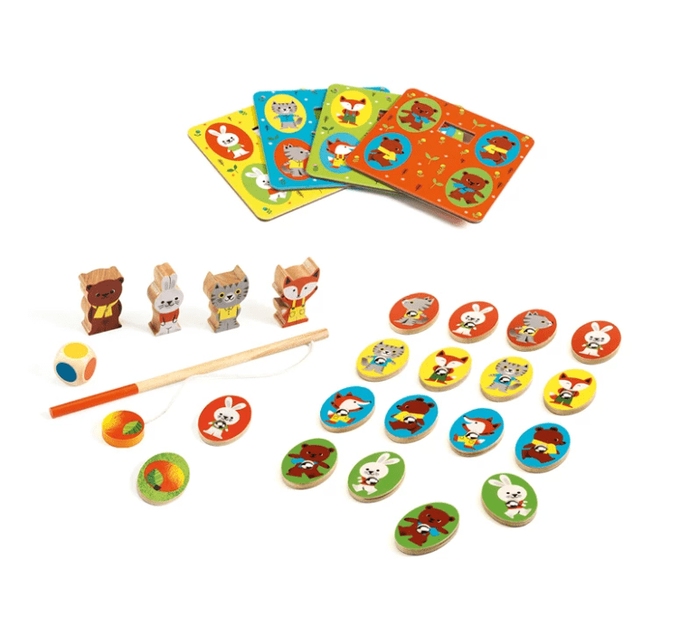 Un beau coffret comprenant quatre jeux : un jeu de pêche magnétique, une loterie, un mémo et un jeu de course. LudoWood est le coffret idéal pour découvrir quatre jeux classiques que Djeco a repensés pour les enfants à partir de 2 ans.