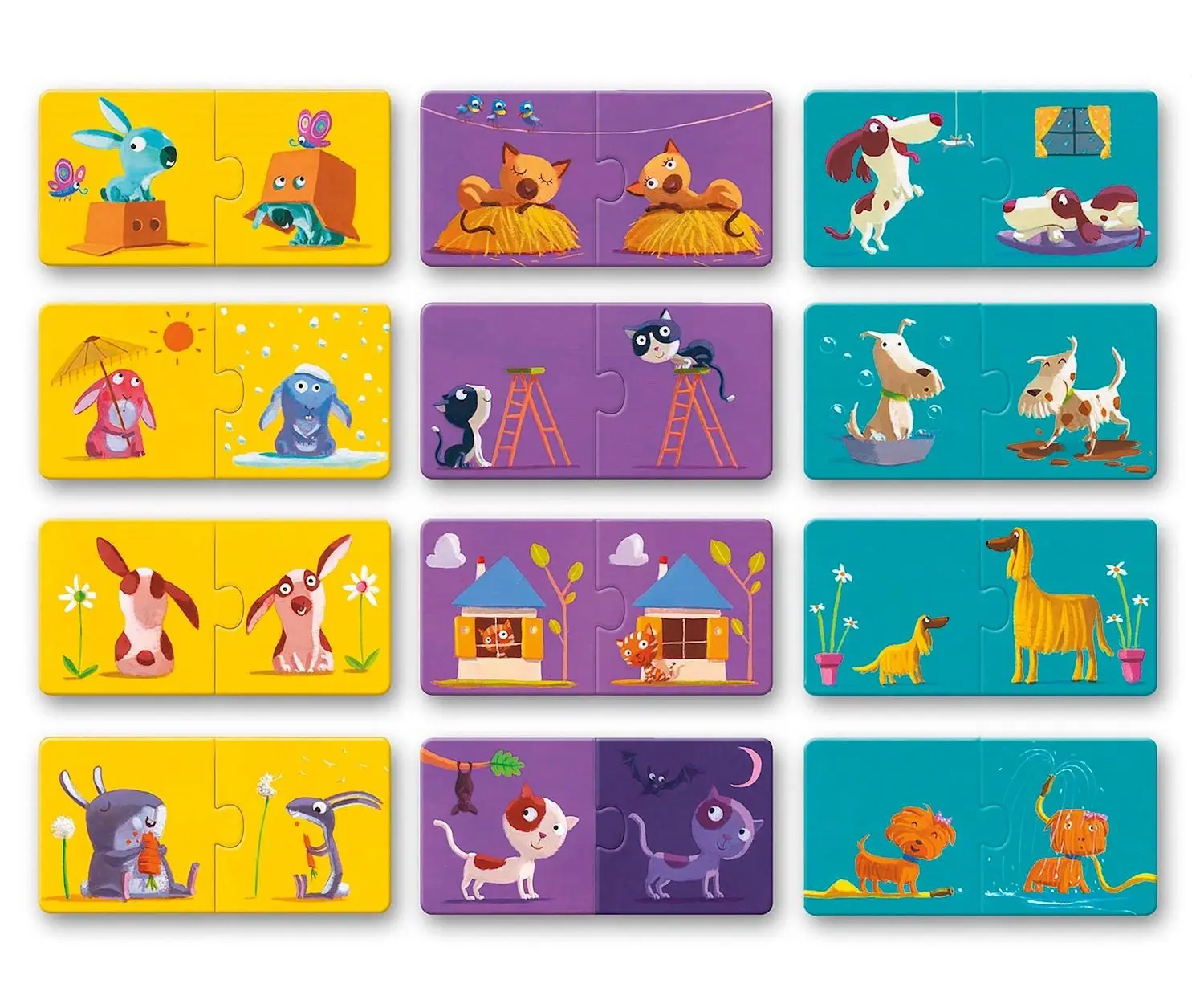 Le puzzle Duo Les Contraires est un jouet polyvalent permettant de stimuler le développement des petits dès 2 ans. Le set contient 12 puzzles composés chacun de 2 pièces. Qui trouvera les contraires ? Les couleurs et les motifs sont d’une grande aide. Ces puzzles en carton robuste stimulent non seulement la motricité, mais aussi la compréhension des formes, des couleurs et des humeurs.