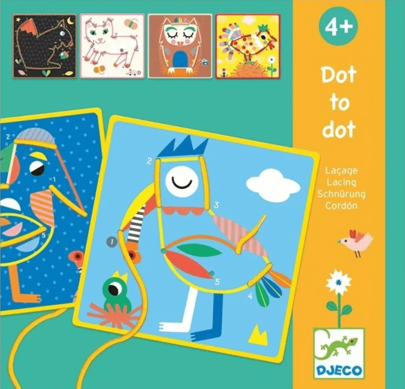 Dot to Dot – Laçage est un jeu de points à relier qui aide les enfants à apprendre les chiffres tout en perfectionnant leur motricité fine. En utilisant un lacet coloré au lieu d’un crayon, ils passent d’un trou à l’autre pour créer de superbes images. Les contours colorés facilitent le choix du bon lacet, révélant ainsi une image à l’avant et à l’arrière de la carte. Cette activité ludique et éducative encourage l’apprentissage des chiffres tout en favorisant le développement des compétences motrices fines.