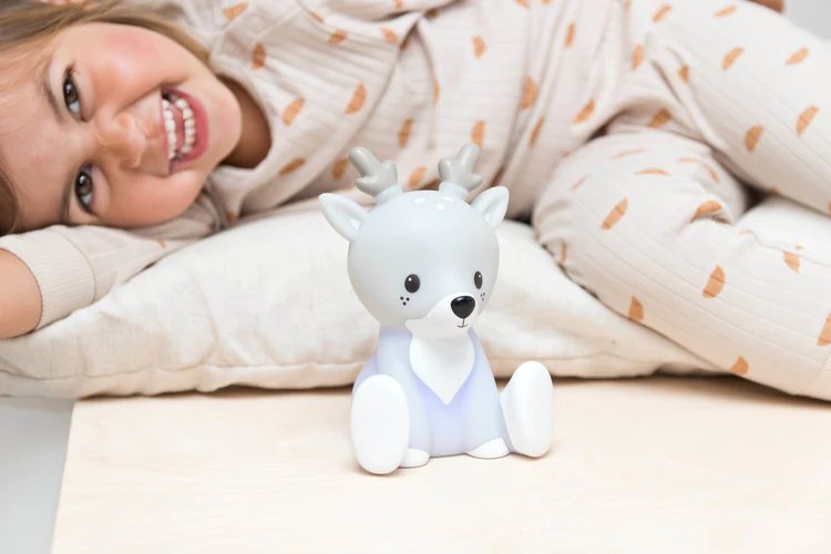 Questa allegra luce notturna a LED è ricaricabile tramite USB e cambia colore toccando la sua parte posteriore. Puoi impostare la luce notturna perché si spenga automaticamente dopo 15 minuti o scegliere di lasciarla accesa tutta la notte, entrambe le opzioni sono disponibili tramite il pulsante di accensione/spegnimento. La sua texture morbida permette ai bambini di abbracciarla in sicurezza prima di essere cullati nel sonno!