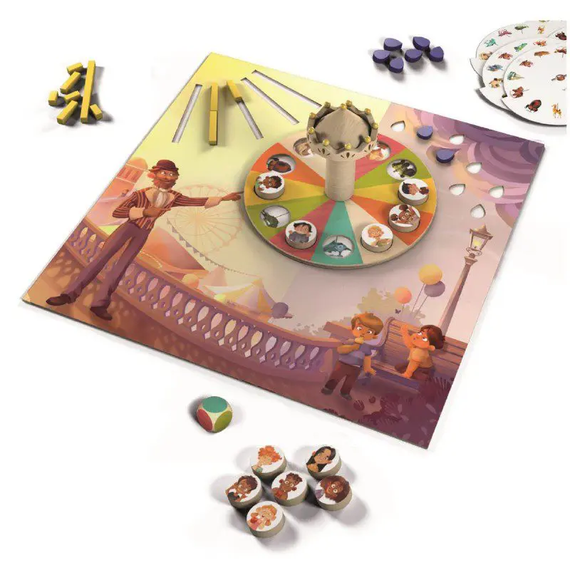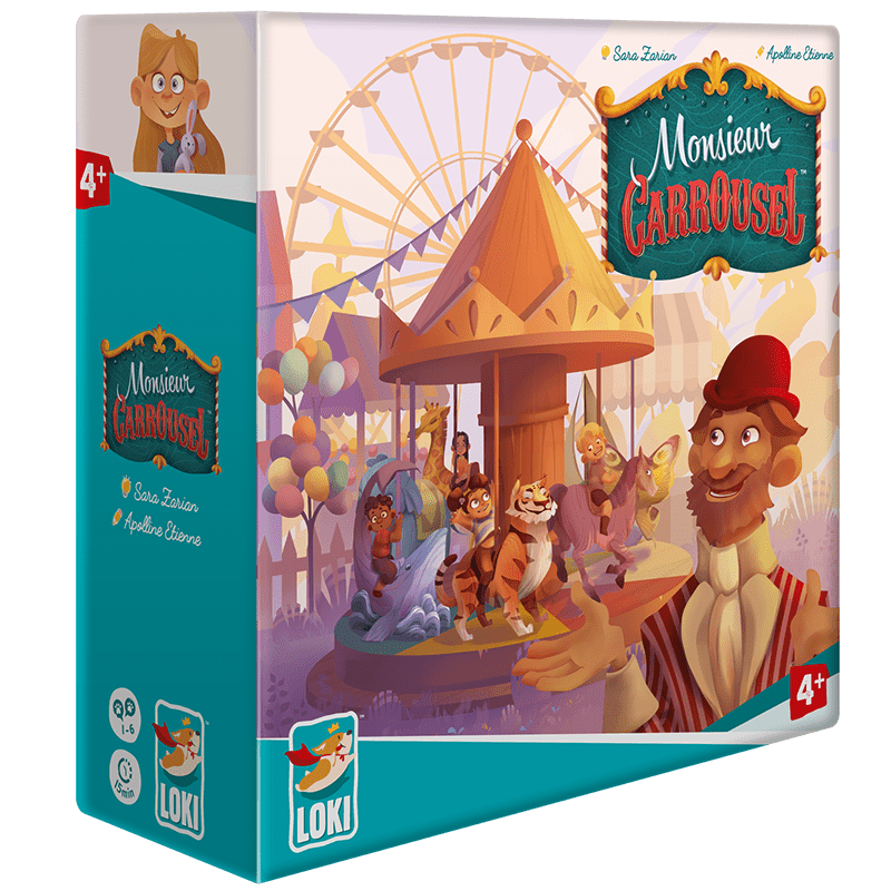 L’heure est venue d’embarquer sur le manège pour un voyage mémorable qui viendra chatouiller votre mémoire… ainsi que votre chance ! Monsieur Carrousel vous accueille au coeur de la Fête Foraine pour un jeu coopératif dans lequel les joueurs doivent trouver une place sur le manège pour chaque enfant. Choisiront-ils le cheval de bois, le dauphin ou le petit avion ?