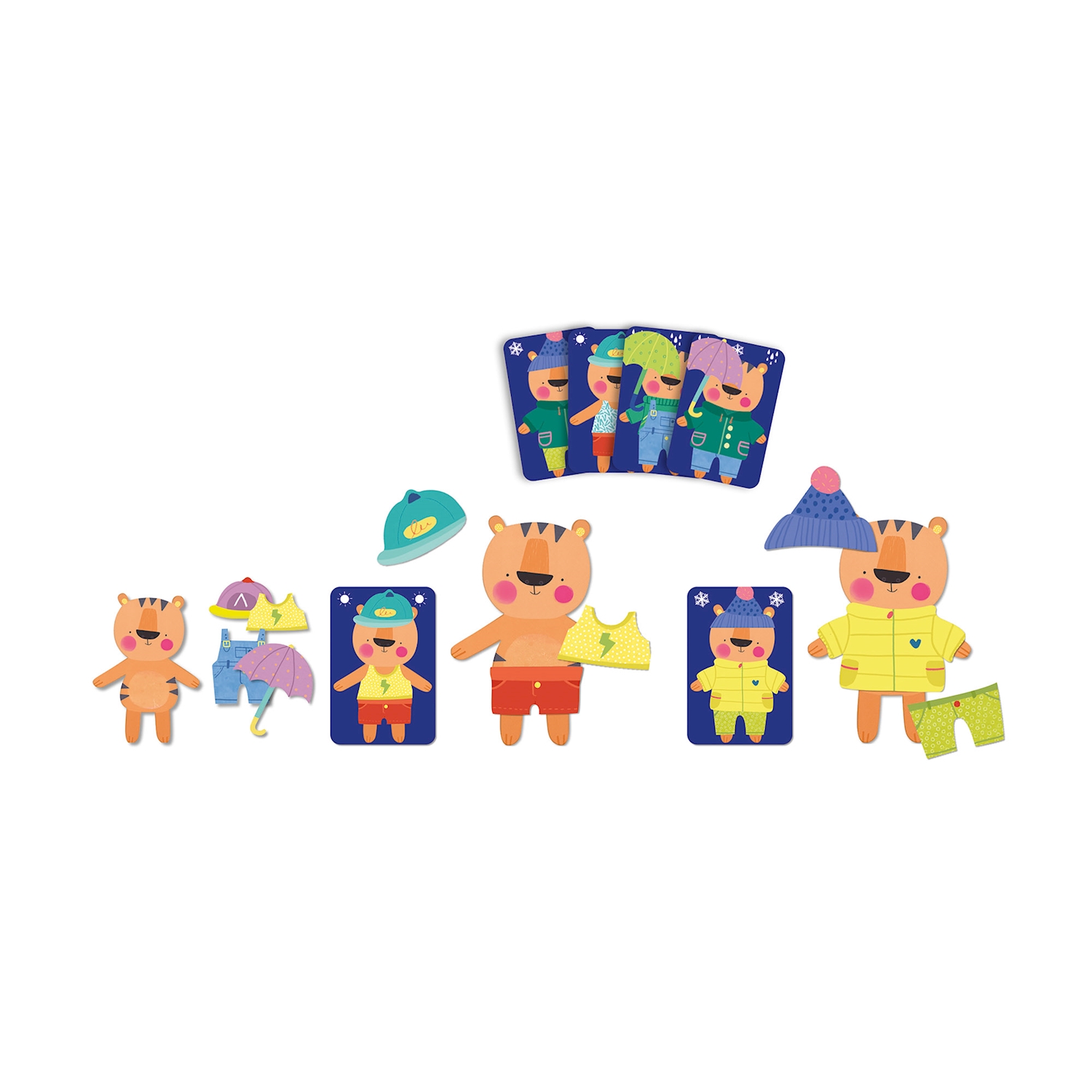Rapido Météo di Djeco è un gioco dinamico per bambini dai 3 ai 6 anni. Ascoltando attentamente le descrizioni, devono vestire correttamente la loro tigre. Con regole semplici e una breve durata di 15 minuti, è una sfida divertente che stimola la memoria uditiva e le capacità di comunicazione.
