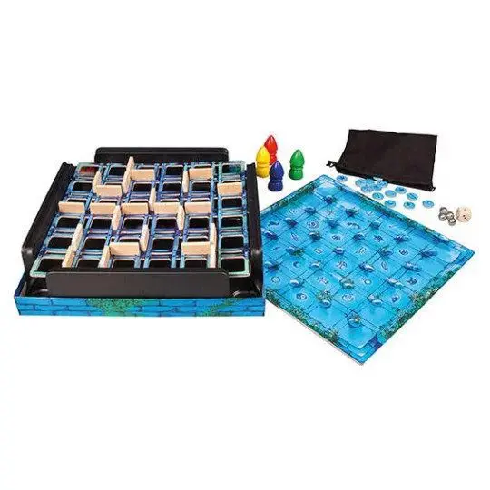 Le Labyrinthe Magique (dès 6 ans) : Dans ce jeu, les enfants développent leur mémoire dans un environnement magique tel que ce labyrinthe. Les joueurs doivent collecter 5 objets dans le labyrinthe magique. Placez les murs du labyrinthe puis essayez de mémoriser le parcours qui est ensuite recouvert par le plateau de jeu !