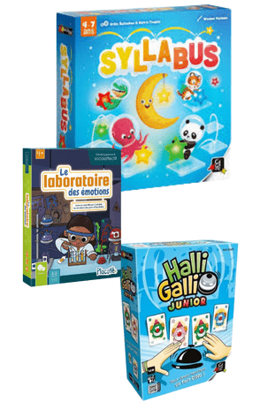 Cette boîte éducative a été spécialement conçue pour accompagner les enfants de 5 à 6 ans dans le développement de compétences variées. Elle contient quatre jeux soigneusement sélectionnés pour renforcer des aptitudes essentielles, telles que le langage, la mémoire, les interactions sociales et les fonctions exécutives. Un guide conçu par des experts du développement est également inclus, proposant des outils concrets pour enrichir les échanges parent-enfant et transformer chaque moment de jeu en une expérience d’apprentissage ludique et stimulante.