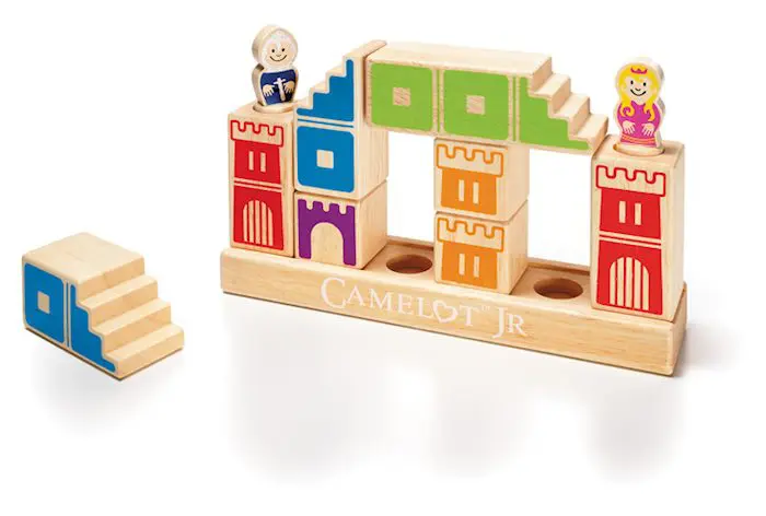 Avis de l’expert Ce jeu de construction demande à l’enfant de résoudre des énigmes complexes pour aider le chevalier et la princesse à se retrouver. Le joueur doit manipuler les blocs et les orienter correctement pour construire des structures stables qui permettent d’atteindre l’objectif. Cela renforce leur motricité fine et leur coordination oeil-main. En explorant différentes possibilités au fur à mesure des défis, le joueur développe sa capacité à penser de manière innovante. Petit à petit Camelot Jr permet de développer de nouveaux assemblages logiques de plus en plus complexes et subtiles qui enrichissent le développement du raisonnement spatial chez l’enfant.