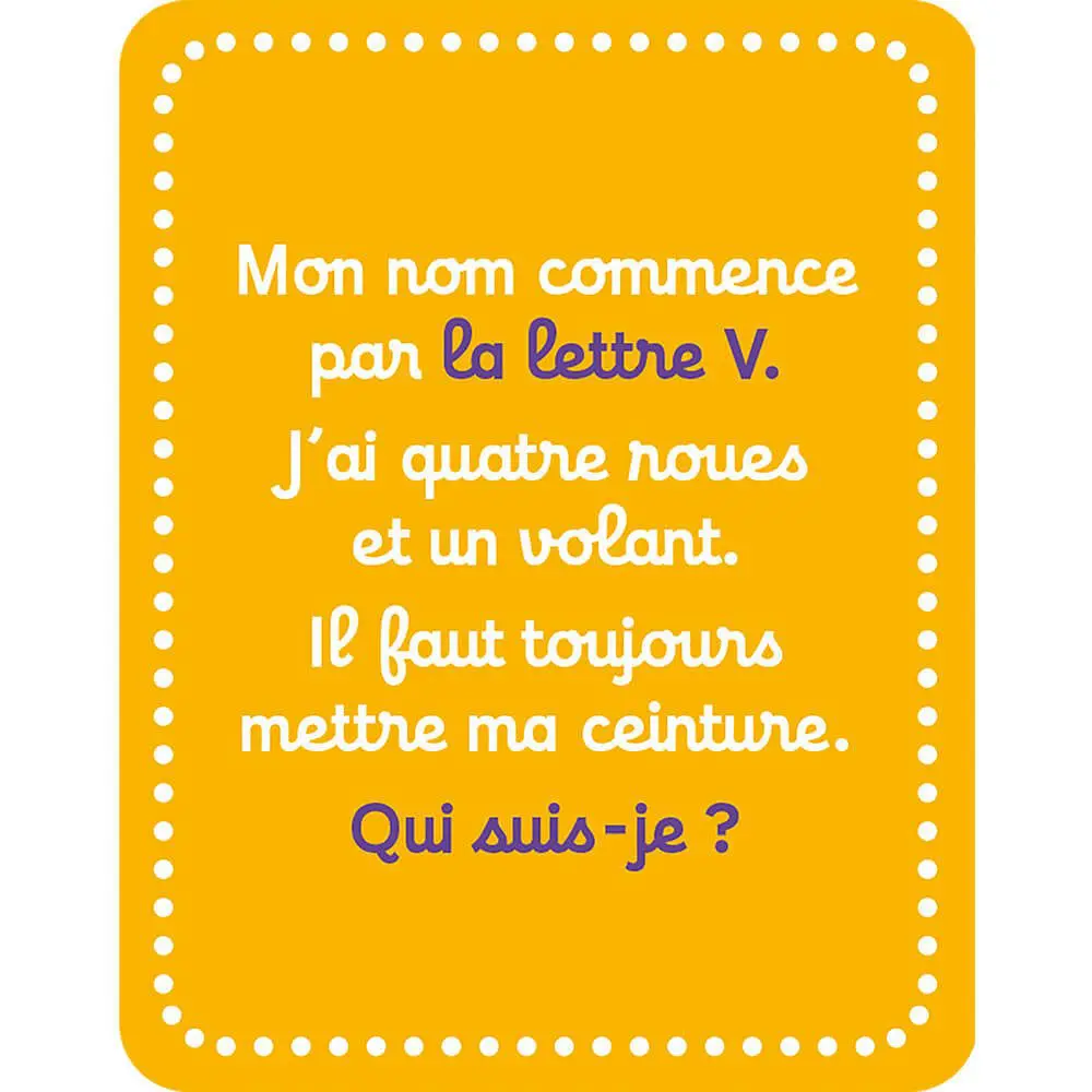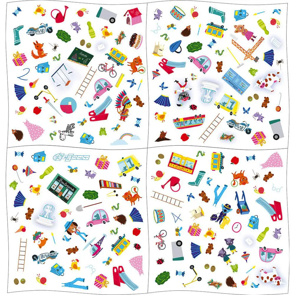 Voici un jeu parfait pour les enfants en pleine acquisition de l’alphabet ! On apprend en s’amusant avec ce Cherche et Trouve sur le thème des lettres ! Comment jouer ? On pioche une carte question qui nous permettra d’identifier un élément à retrouver sur le plateau. 80 questions permettront aux enfants d’assimiler au fur et à mesure les lettres et de faciliter l’apprentissage de la lecture. Astucieux, le plateau de jeu est double-face et modulable ! Il se compose de 4 parties amovibles, ce qui permet d’avoir 24 combinaisons possibles.