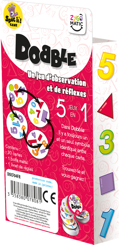 55 cartes comportant chacune six chiffres ou formes géométriques, 5 variantes… et c’est parti !
