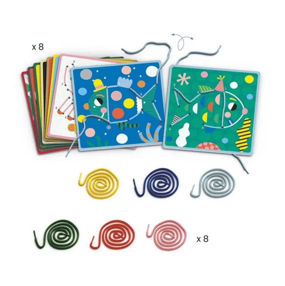 Dot to Dot – Laçage est un jeu de points à relier qui aide les enfants à apprendre les chiffres tout en perfectionnant leur motricité fine. En utilisant un lacet coloré au lieu d’un crayon, ils passent d’un trou à l’autre pour créer de superbes images. Les contours colorés facilitent le choix du bon lacet, révélant ainsi une image à l’avant et à l’arrière de la carte. Cette activité ludique et éducative encourage l’apprentissage des chiffres tout en favorisant le développement des compétences motrices fines.