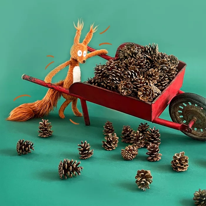 Le bel écureuil roux, héros de l’école des loisirs, prend vie pour jouer et s’amuser avec les petits ! Un brin farfelu, il a des yeux grands comme des soucoupes et une queue en panache. Son péché mignon à lui…les pommes de pin !