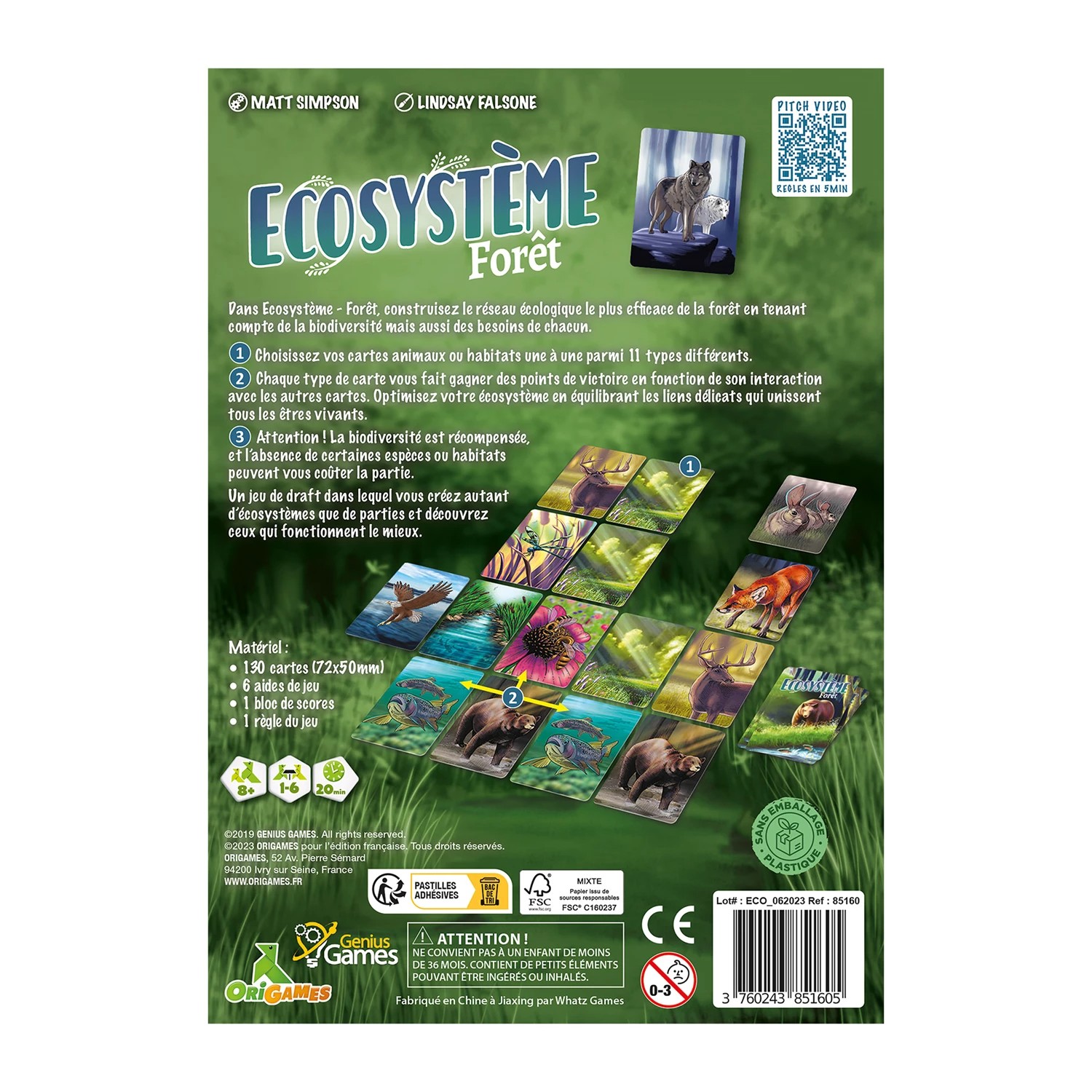 Dans Ecosystème – Forêt, construisez le réseau écologique le plus efficace de la forêt en tenant compte de la biodiversité, mais aussi des besoins de chacun. Optimisez votre écosystème en équilibrant les liens délicats qui unissent tous les êtres vivants. Créez autant d’écosystèmes que de parties et découvrez ceux qui fonctionnent le mieux.