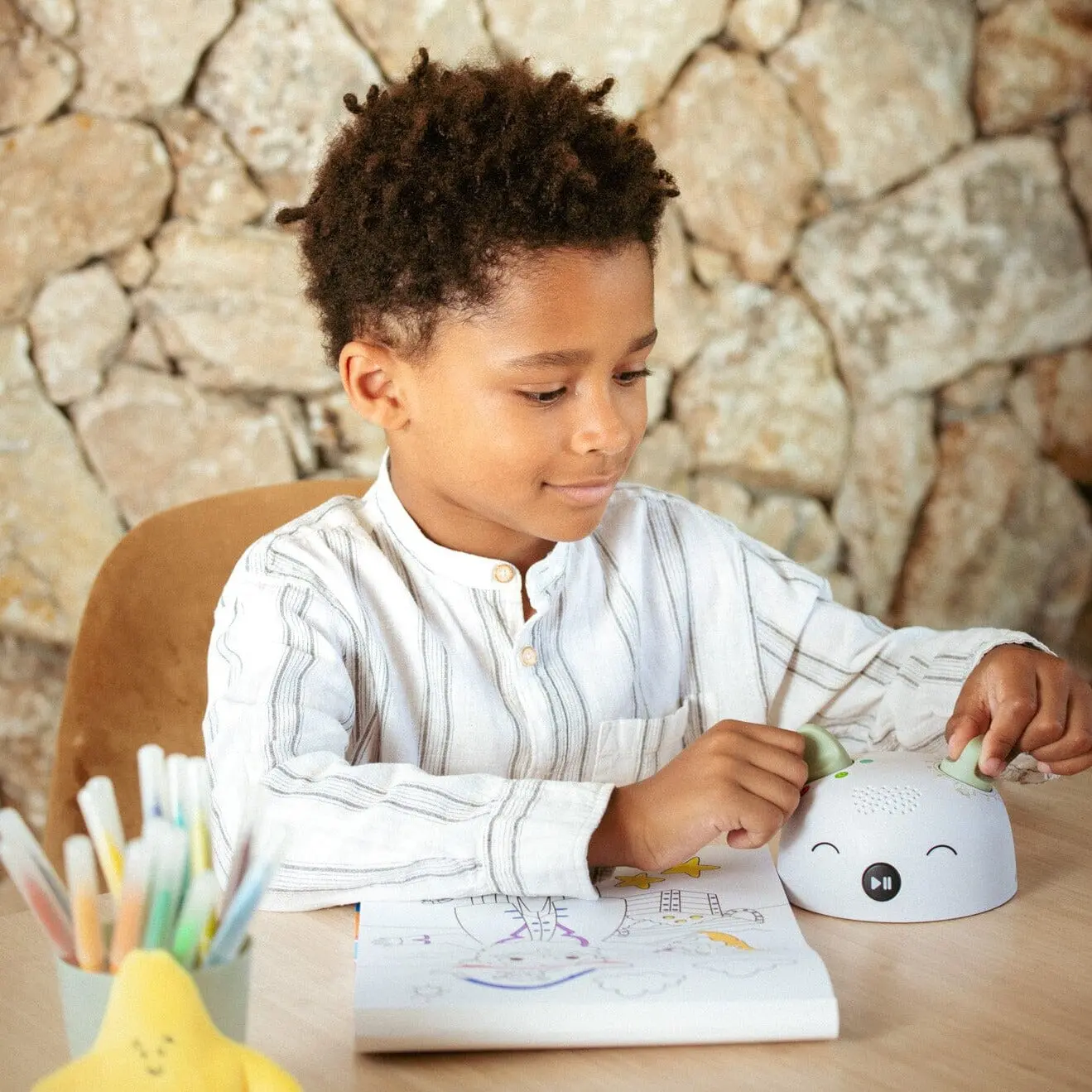 Ces histoires, provenant des collections d’Hachette Enfants, ainsi que des séances de sophrologie, font d’Elio un compagnon unique, exempt d’ondes et d’écran, pour l’épanouissement de votre enfant.