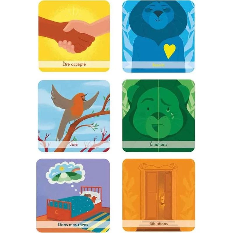 Les explorateurs : Un joueur pioche une carte émotion, puis chaque joueur exprime une situation qui suscite cette émotion chez lui. Cela permet à chacun de se connecter à ses propres émotions et de les partager avec les autres.
