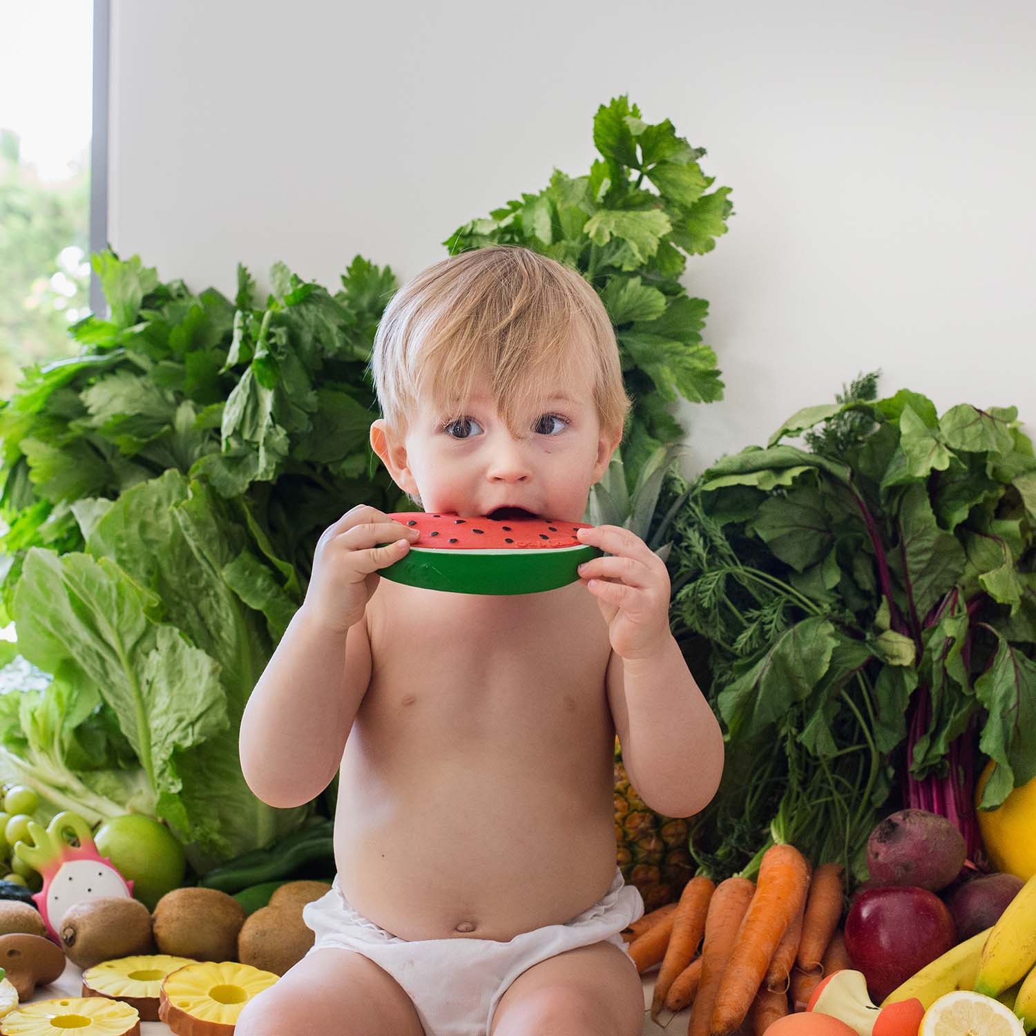 Wally the Watermelon est un anneau de dentition en forme de fruit qui stimulera les sens des bébés tout en apaisant les petites gencives. Ses textures réalistes développeront le sens du toucher des enfants. Il est soigneusement peint à la main avec des pigments naturels, ce qui le rend totalement sans danger pour les tout-petits. Saviez-vous que l'inclusion de la pastèque dans les aliments aide à conserver 90 % de l'eau dans le corps humain ? Initiez les enfants à un mode de vie sain dès leur plus jeune âge !