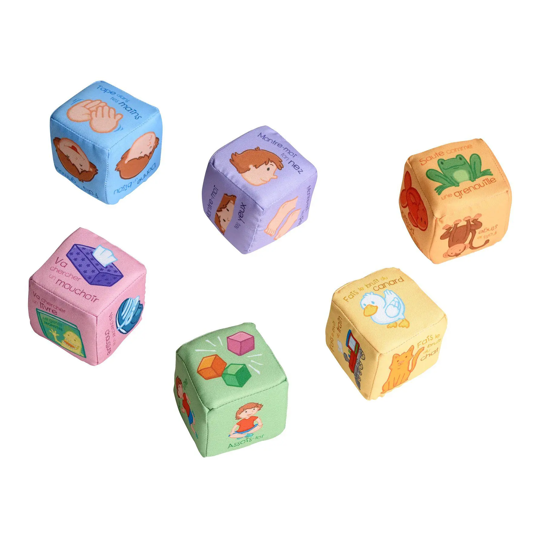 Prends un dé et amuse-toi à le lancer au bout de tes bras ! Attention ! Le dé t’indique une consigne à exécuter. Construis la tour un dé à la fois et fais-la tomber !