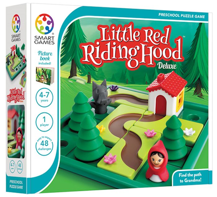 Trouvez le chemin pour rejoindre Mère-Grand. Découvrez la magie de ce conte populaire dans ce jeu de réflexion idéal pour les jeunes enfants. Pourrez-vous aider le Petit Chaperon Rouge à trouver son chemin pour rejoindre Mère-Grand Placez la maison, les sapins et le Petit Chaperon Rouge sur le plan de jeu et utilisez les tuiles «chemin» pour lui permettre de rejoindre la maison. Vous devrez surmonter 24 défis de difficulté croissante. Une bande-dessinée du conte est également incluse, sans texte, narrant l’histoire originale sous un trait original.