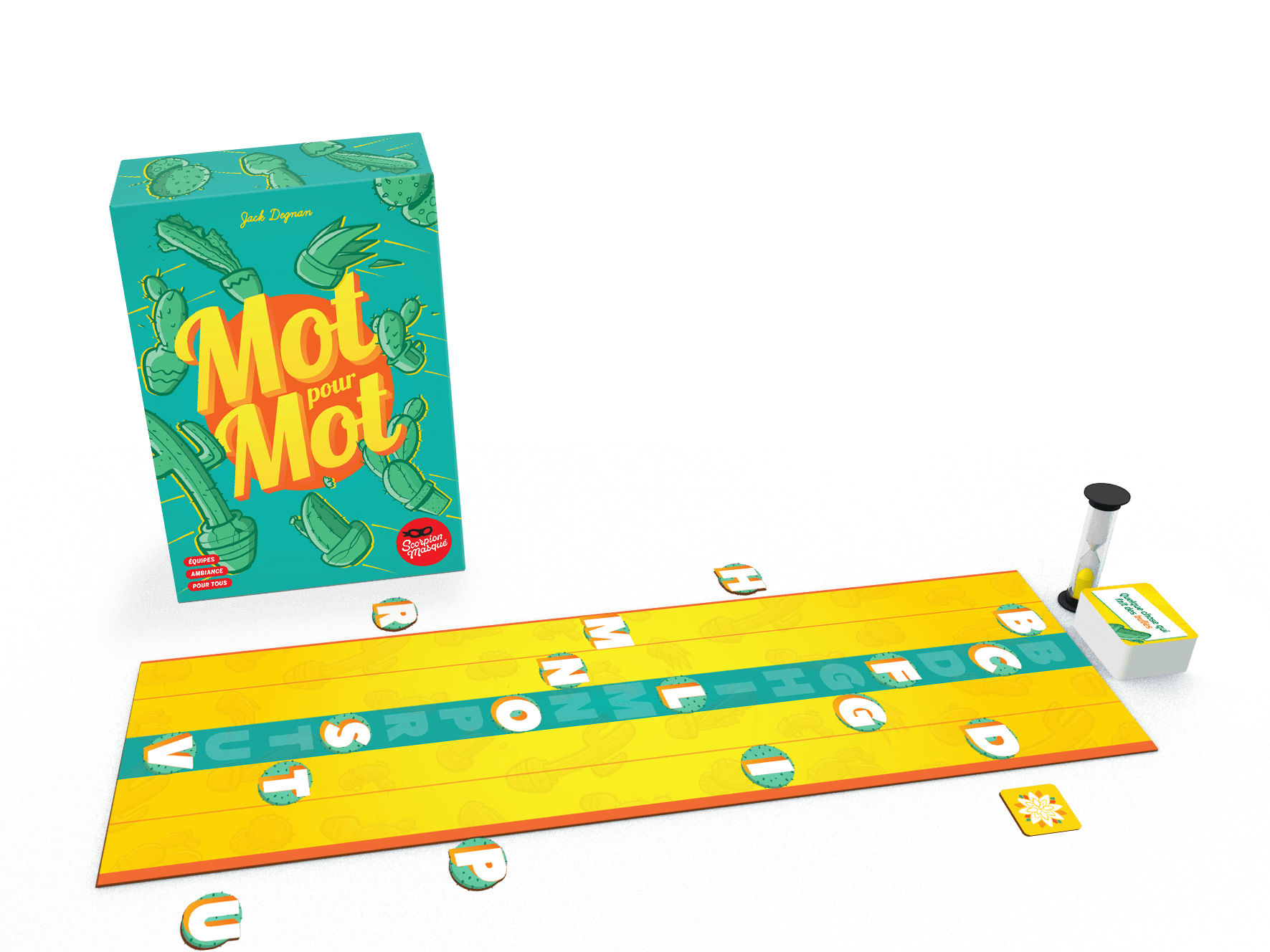 Balancez 5 lettres (cactus) dans le camp adverse pour gagner. À votre tour, trouvez vite un mot correspondant à la catégorie imposée et poussez chaque lettre d’une colonne.