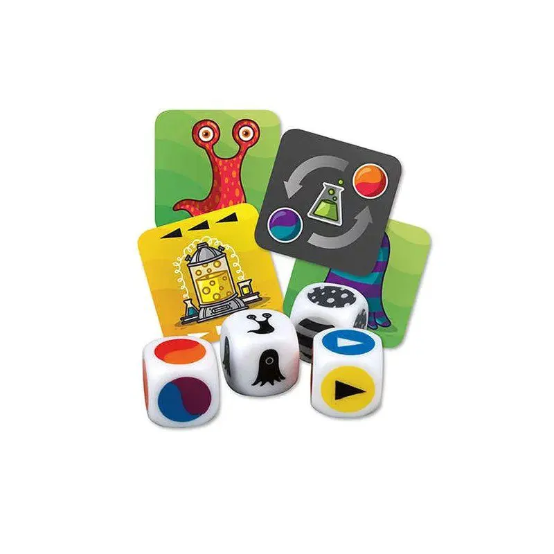 Des amibes se sont échappées et courent dans tous les sens, il faut vite les rattraper ! Les joueurs jouent tous ensemble et en même temps. Lancez les 4 dés très spéciaux qui vous indiqueront quel laboratoire a laissé s’échapper l’Amibe et à quoi elle ressemble. Le premier qui désigne la bonne amibe gagne un point. Mais attention, ces petites bêtes ne se laissent pas attraper facilement: elles se cachent sous les grilles d’aération et peuvent subir des mutations!