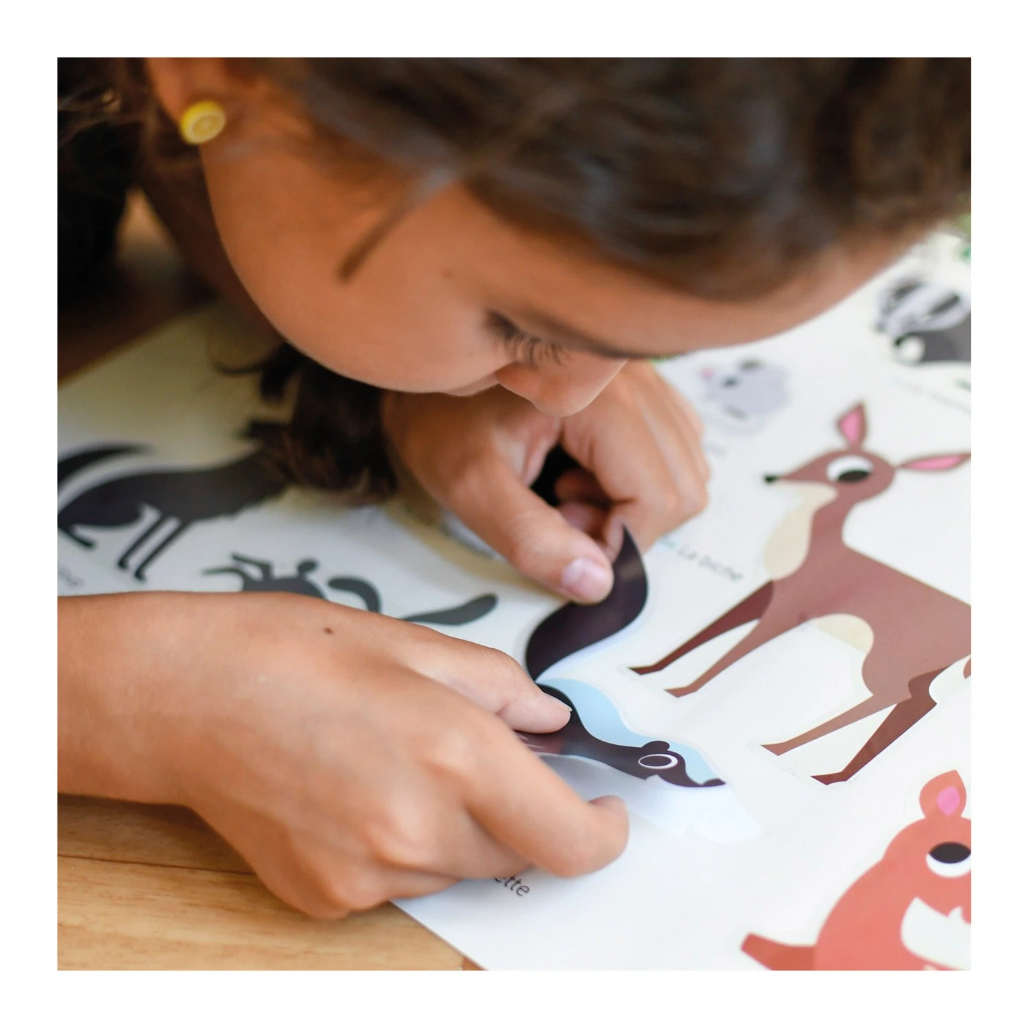 Avec ce poster pédagogique, les enfants se passionnent pour le monde de la forêt : les feuilles des arbres, les animaux, les insectes, les champignons… Les enfants collent les stickers sur le poster géant et reconstituent ainsi une très belle affiche pour la chambre.