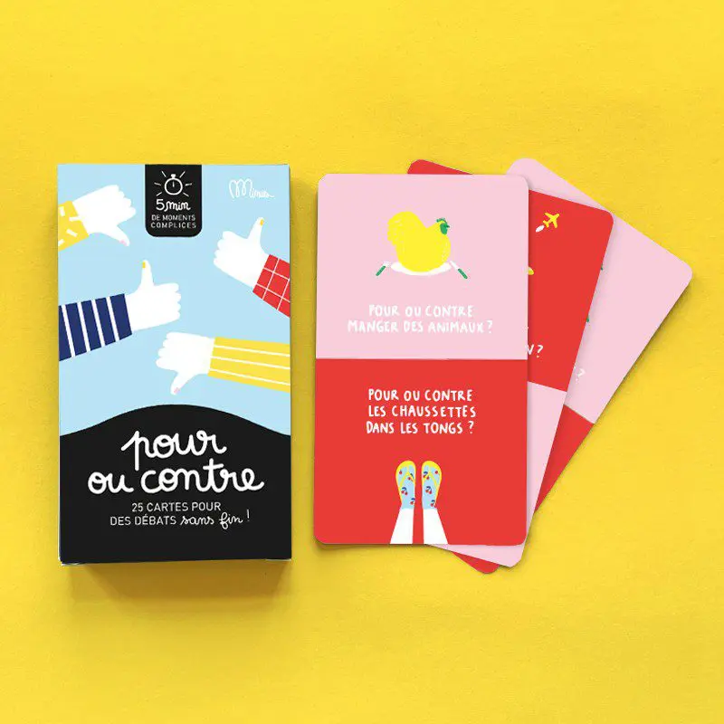 Voici, un jeu pour s’amuser à débattre indéfiniment et découvrir que souvent rien n’est tout blanc ou tout noir ! Prêts pour des discussions super sérieuses ou un peu farfelues ? Au programme : débats et fous rires garantis pour faire pétiller les moments ensemble.