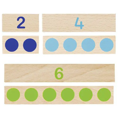 Un jeu conçu pour permettre aux enfants d'apprendre à compter par eux-mêmes en pratiquant des opérations telles que 5+2, 7+1… Il peut être difficile d'initier les enfants à l'arithmétique, car le monde des nombres peut sembler abstrait. Cet outil pédagogique et amusant offre aux enfants la possibilité de visualiser les chiffres et les résultats d'opérations simples en utilisant des représentations visuelles des quantités. De plus, il est présenté dans une boîte en bois de hêtre de haute qualité.