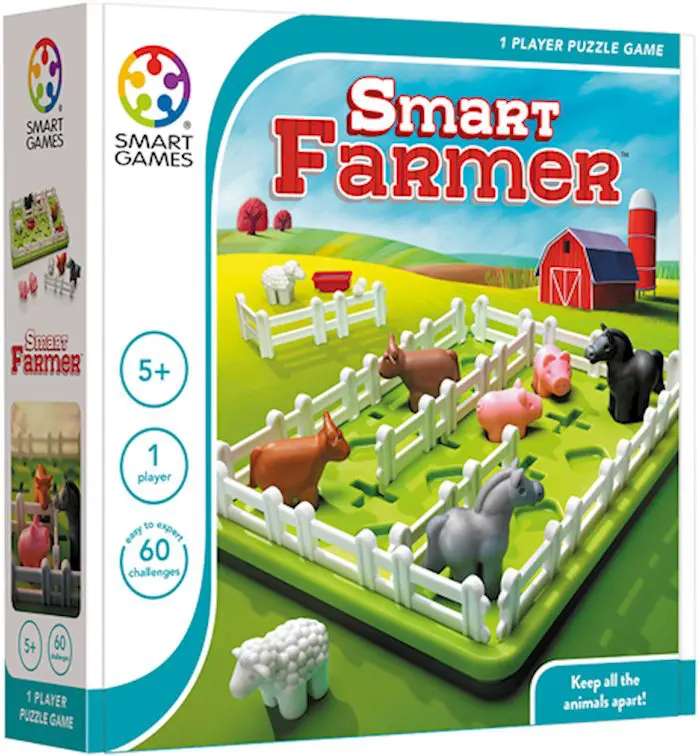 Petit problème à la ferme ! C’est la pagaille. Les animaux font tout un bazar et doivent être séparés… mais le fermier n’a que trois clôtures simples pour diviser sa terre en prairies séparées. Pouvez-vous l’aider à placer les clôtures de façon que les chevaux, les vaches, les moutons et les cochons aient chacun leur propre espace ?