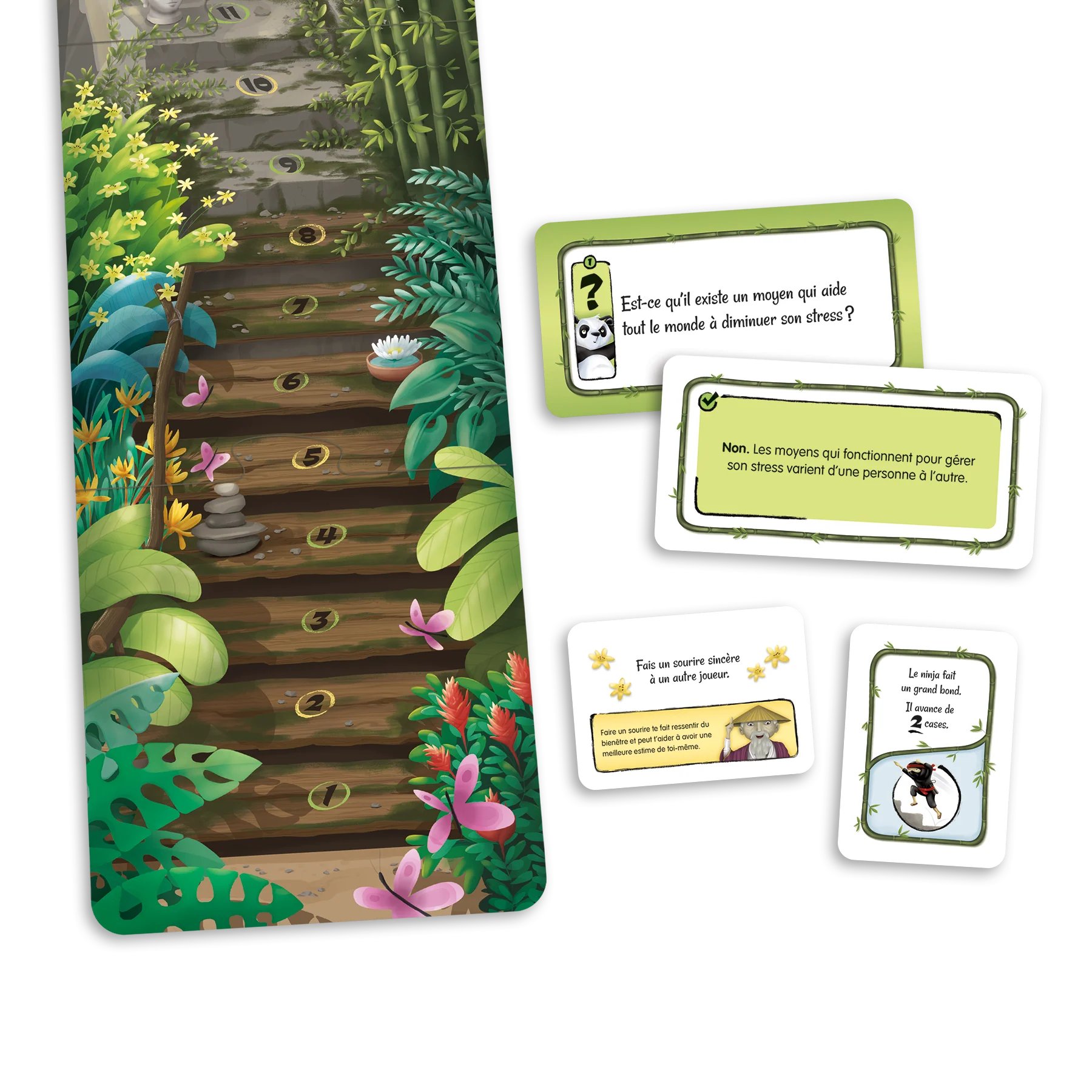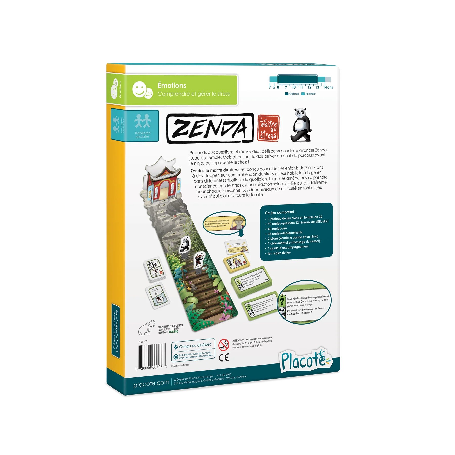 Avis de l’expert Dans ce jeu collaboratif, les joueurs tentent de battre le ninja du stress. En répondant aux différentes questions et en réussissant différents défis, les enfants ont l’opportunité d’apprendre à mieux comprendre les mécanismes sous-tendant le stress et surtout à mieux gérer les situations qui en génèrent. Évolutif, Zenda : le maître du stress propose deux niveaux de difficultés à adapter en fonction de l’âge des enfants. Le jeu travaillera de plus sur les signaux de stress afin que l’enfant puisse les identifier et mettre en place des stratégies de régulation émotionnelle. À l’aide des défis zen, le jeu propose des actions concrètes à mettre en place pour s’auto-réguler et naviguer à travers des situations stressantes avec calme et maîtrise. Favorisant l’échange et les discussions, il permet de plus de prendre en compte différent points de vue et différentes manières de gérer le stress.